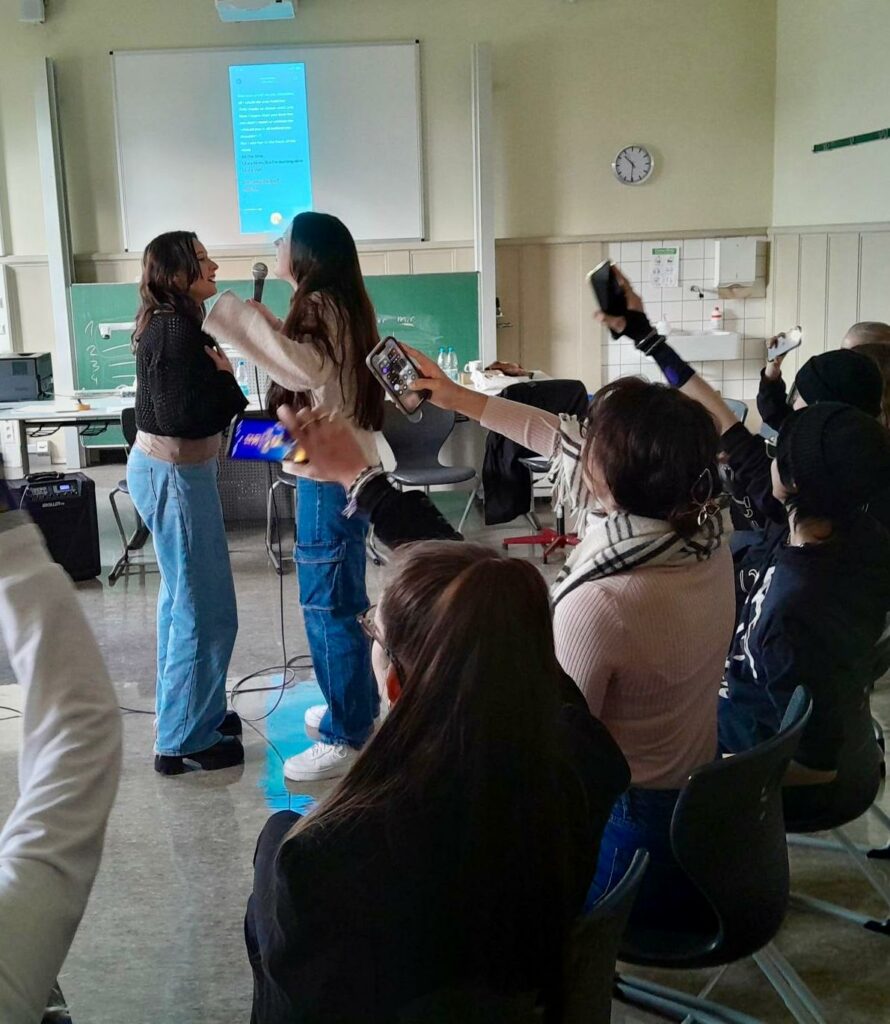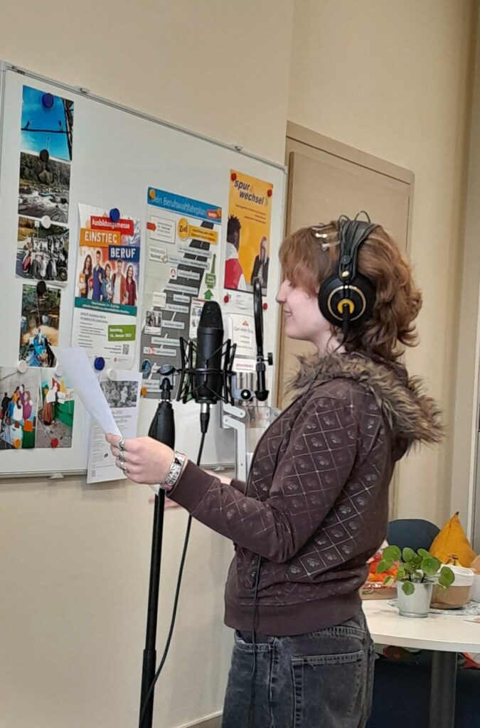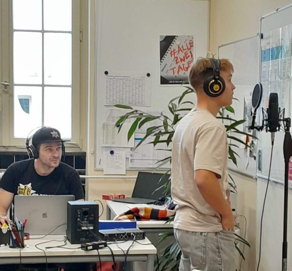 Jede/r konnte ihren/seinen Teil zu dem gemeinsamen Klassensong beitragen – selbst die sonst eher ruhigeren Schüler*innen bekamen eine Stimme und konnten sich einbringen. Eine besondere Herausforderung stellte für die Jugendlichen das Singen am Mikrophon und die Aufnahme des eigenen Songs im mobilen Tonstudio im Büro der Schulsozialarbeit dar. Einzeln oder in kleinen Gruppen wurde eine vertrauensvolle Atmosphäre geschaffen, die jeder/m Schüler*in ermöglichte, aus sich heraus zu gehen, die eigenen Grenzen zu überwinden und sich für die gemeinsame Sache laut zu machen!