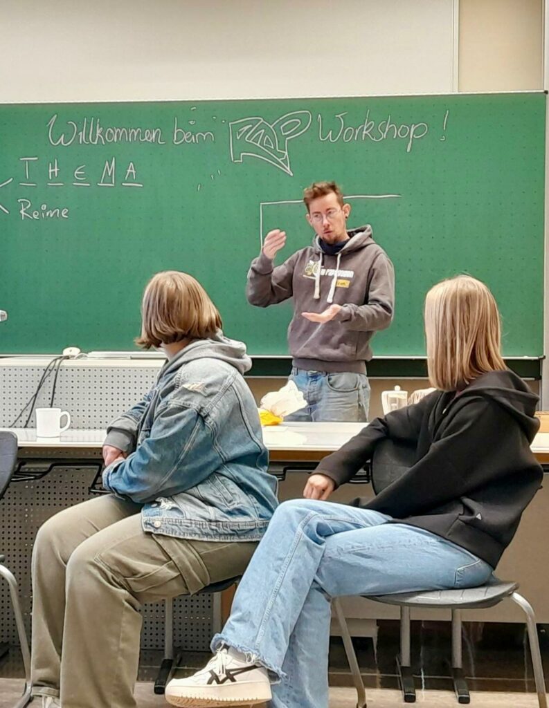 Unter diesem Motto fanden im November und Dezember Rap-Workshops mit den Rapagogen der Who.Am.I. – Creative Academy Mannheim in den Klassen BK1T, VABR1, 3BKGD 1/2 und 3BKGD 2/2 statt. Die Klassen entwickelten unter Anleitung von 2 Rappern eigene Rap-Texte zu Themen, die sie aktuell bewegen, wie Zukunftsangst, Identitätsfindung, Planlosigkeit, Fluchterfahrung, Krieg in der Heimat oder Sorge um die Familie. Dabei fand eine kreative Auseinandersetzung mit diesen persönlichen Themen statt und die Schüler*Innen konnten ihren Sorgen und Ängsten in der Musik Ausdruck verleihen.
