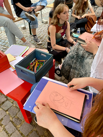 „Diese kreative Begegnung führte dazu, dass sich eigentlich Fremde jeder Altersgruppe miteinander unterhielten und sich in dieser kurzen Zeit kennenlernen konnten. Schön war ebenfalls zu sehen, dass alle Besucher zufrieden und glücklich mit ihren Portraits den Stand verließen.“
