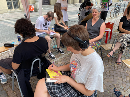 Die Schüler/innen des Berufskollegs Grafikdesign trugen mit der Aktion „Analoges Facebook“ zu dem bunten Programmangebot bei.