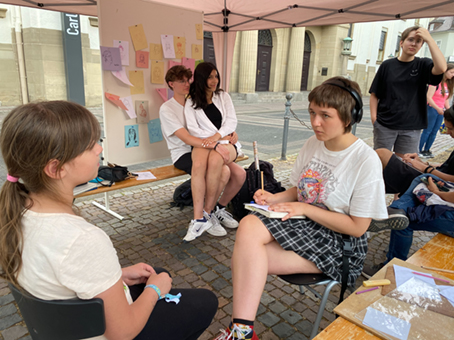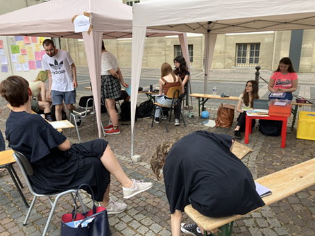 Die Schüler/innen des Berufskollegs Grafikdesign trugen mit der Aktion „Analoges Facebook“ zu dem bunten Programmangebot bei.