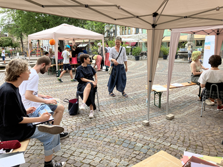 „Diese kreative Begegnung führte dazu, dass sich eigentlich Fremde jeder Altersgruppe miteinander unterhielten und sich in dieser kurzen Zeit kennenlernen konnten. Schön war ebenfalls zu sehen, dass alle Besucher zufrieden und glücklich mit ihren Portraits den Stand verließen.“