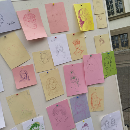 Welch bessere Gelegenheit kann es geben, diesen Satz unseres Leitbilds direkt vor den Türen unserer Schule unter Beweis zu stellen? Und so war die Carl-Hofer-Schule mit unseren angehenden Grafik-Designer einen ganzen Nachmittag damit beschäftigt Besucher zu porträtieren. „Ähnlichkeiten mit lebenden Personen“ sind daher nicht rein zufällig, sondern durchaus gewollt!